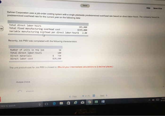 The total job cost for Job P951 is closest to. Dehner Corporation uses a job-order costing system with a single plantwide predetermined overhead rate based on direct labor-hou rs. Accounting questions and answers. Lupo Corporation uses a job-order costing system with a single plantwide predetermined overhead rate based on machine-hours. Total Direct-labor hours 40000. Dehner Corporation uses a job order costing system with a single plantwide predetermined overhead rate based on direct labor hours. The company based its predetermined overhead rate for the current year on the flowing data.