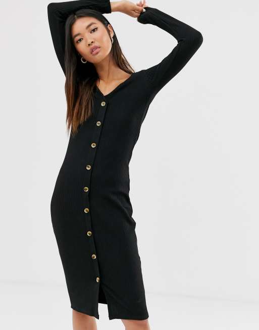 Model Height - 5ft 5. Solve all of those nothing to wear dilemmas with our extensive range of womens ribbed dresses that are perfect for any occasion. Mar 21 2019 - Shop Black Button Front Bodycon Midi Dress.